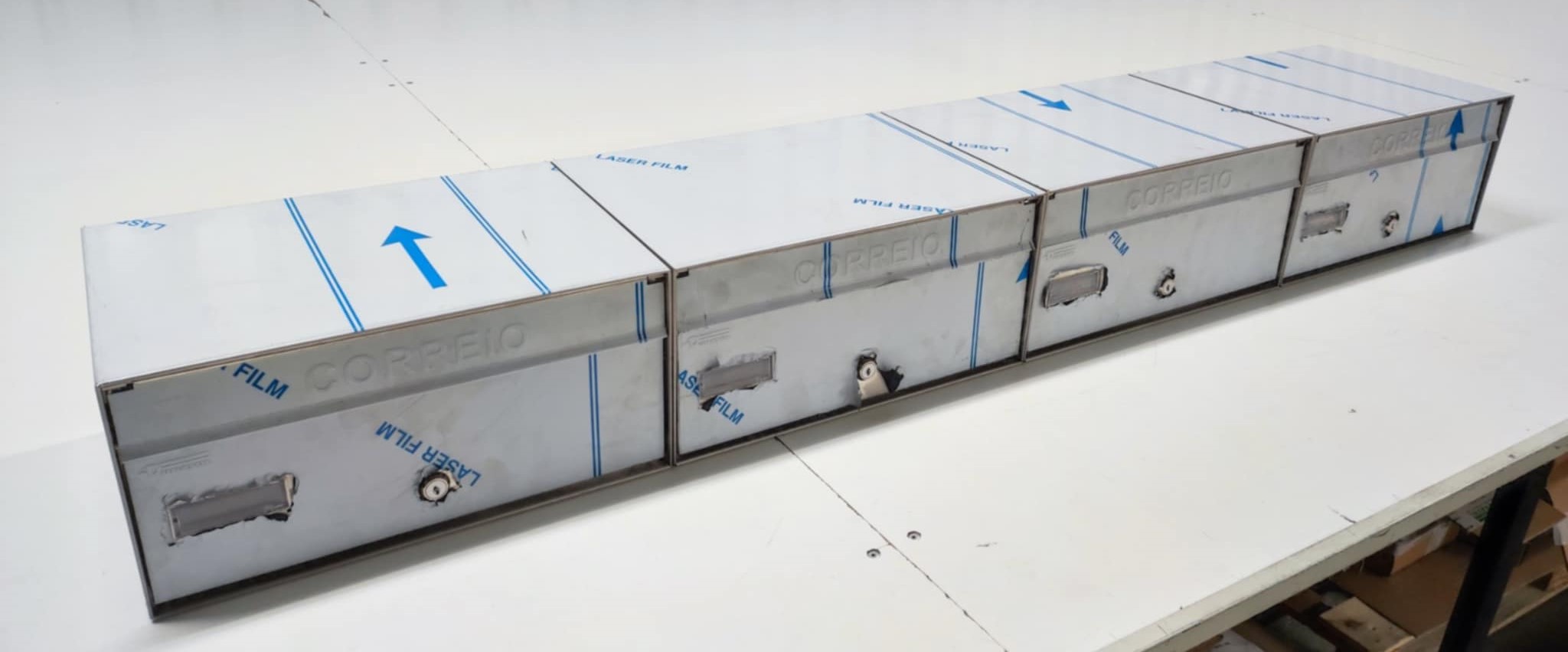 Fabricação em chapa inox ou chapa zincor lacada a branco cor Ral 9010 ou outro a definir.