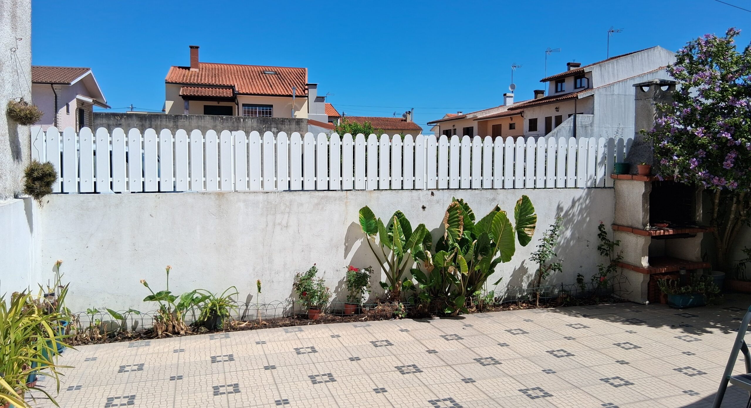 Vedações em grade de ripado, construída a partir de chapa zincada, zincor ou pré-lacada com 1 mm de espessura, fixadas com pilares, construídos a partir de chapa zincor de 2.5 mm de espessura e estes por sua vez fixados ao muro com buchas de aço de 8 ou 10 mm.